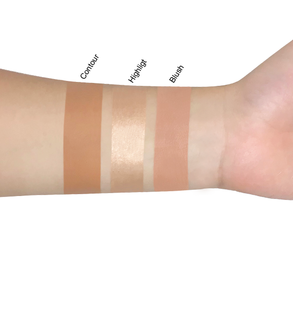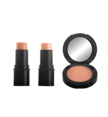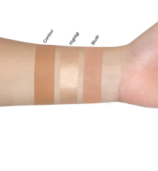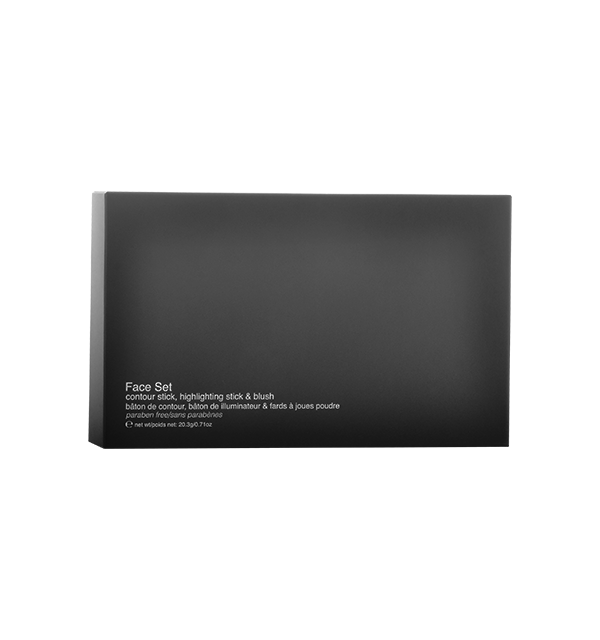 Our pre-packaged 3pc face set includes 1 contour stick, 1 highlighting stick, and 1 blush.