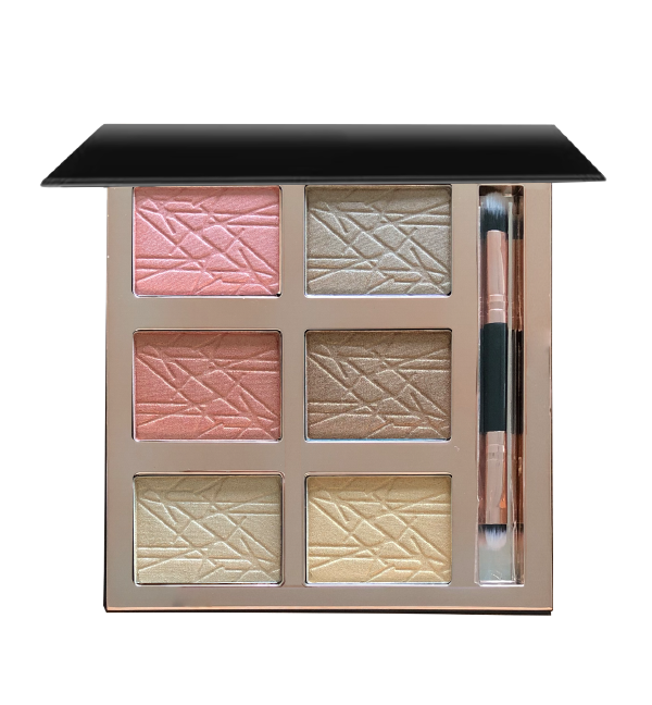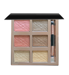 Complete face palette with luminous highlighters and ultra-fine velvet texture contour and blush shades. Buildable formulas can be worn alone or blended together to create a customized day to evening look.