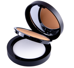 Use this dual blend powder foundation wet or dry to achieve a seamless blend of makeup to perfect your complexion. Adjustable coverage from light to full in a sleek compact to take with you on the go! When it is applied using a damp Blender Sponge (DS41), it gives a very natural-looking coverage with an illuminating finish. When applied dry, it is matte full coverage that has a very smooth velvet finish on the skin. It can be used alone or it can be used to set a liquid foundation when applied dry with a powder brush.