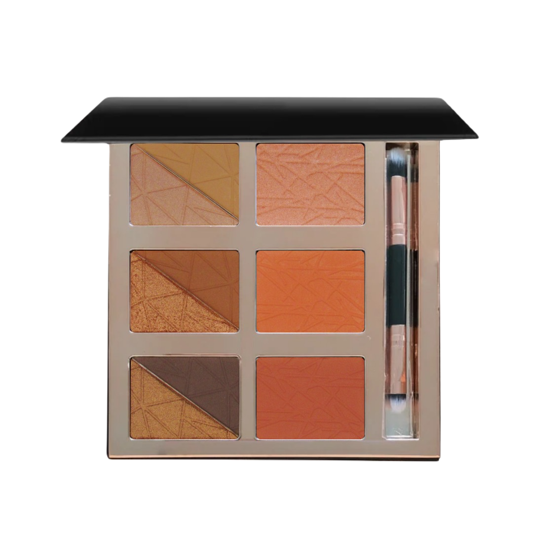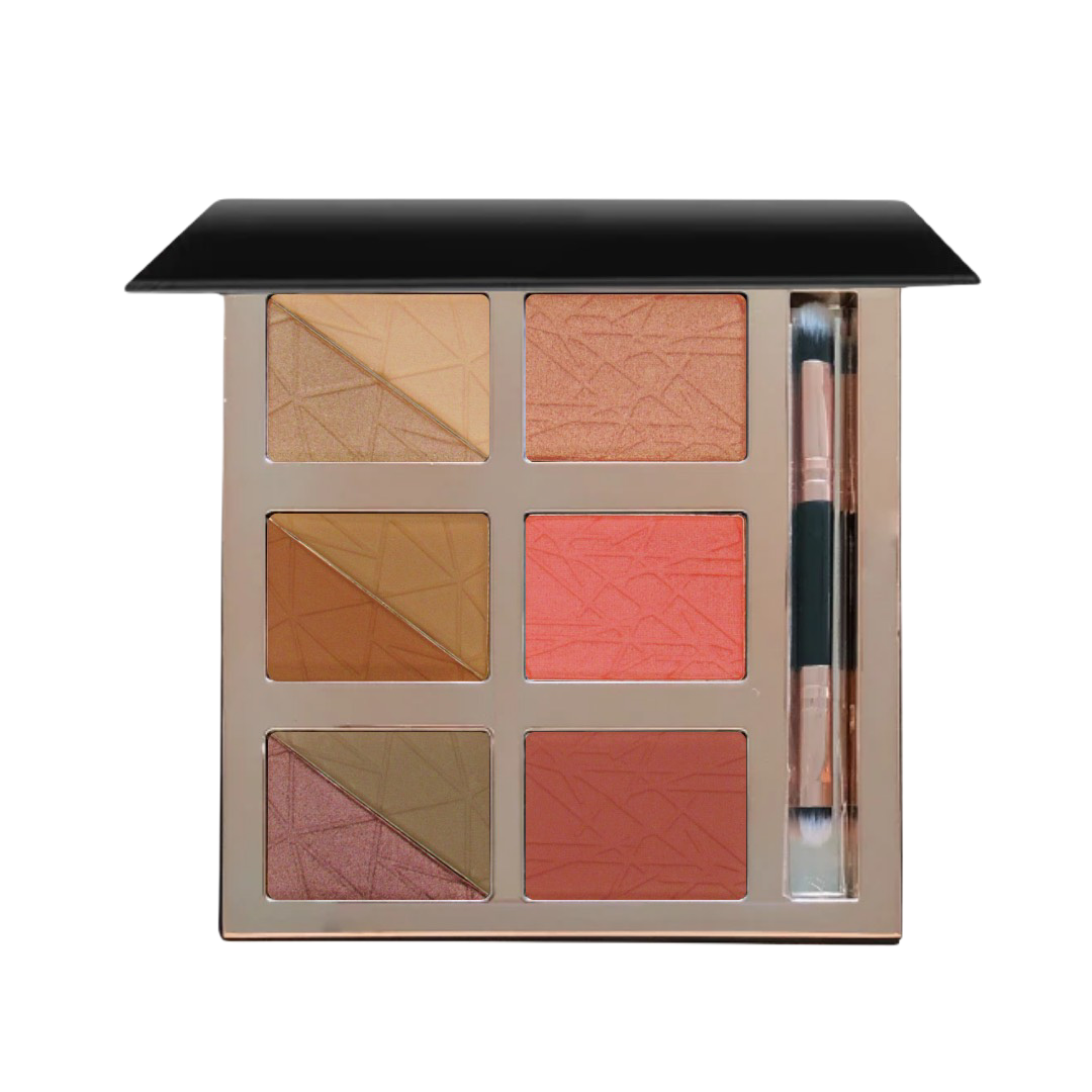 Introducing travel-friendly face and eyeshadow palette, complete with a mirror and mini brush for on-the-go touch-ups. This palette features six eyeshadows, one highlighter, and two blushes, perfect for creating endless looks wherever your journey takes you. It also makes for a perfect gift!
