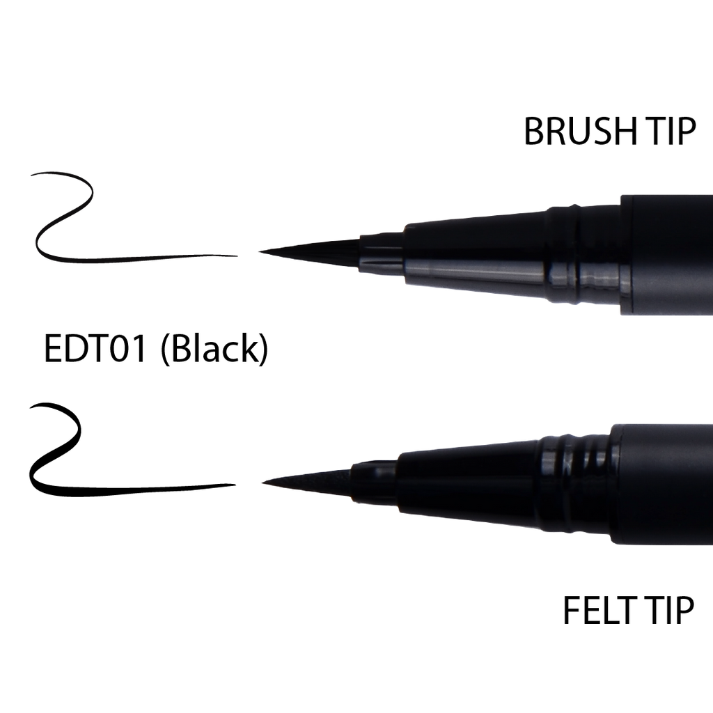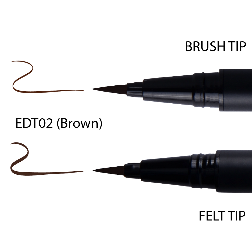 For a softer look, draw a thin line along the lash line starting from the inner corner using the long-tipped brush end. For a bolder look, start at the inner corner with the petite-tipped calligraphy end. At the midpoint, angle the applicator to widen the line as you extend it towards the outer corner.